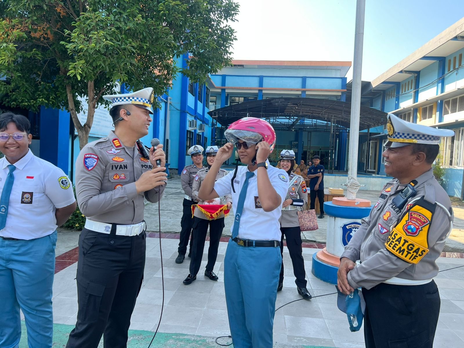 Sementara itu, Kasat Lantas Polres Nganjuk AKP Ivan Danara Oktavian menambahkan, sebagai bentuk apresiasi dan interaksi positif, pihaknya membagikan 3 helm SNI dan sejumlah hadiah menarik kepada siswa-siswi SMA Negeri 2 Nganjuk saat sesi sosialisasi.