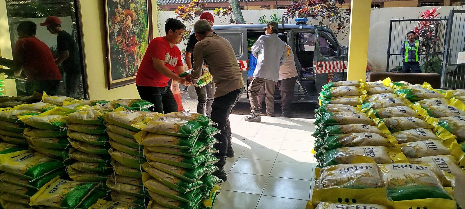 Sebanyak 36 ton atau 7.200 sak beras jenis SPHP (Stabilisasi Pasokan dan Harga Pangan) telah disiapkan untuk Gerakan Pangan Murah dan didistribusikan ke Polsek jajaran.