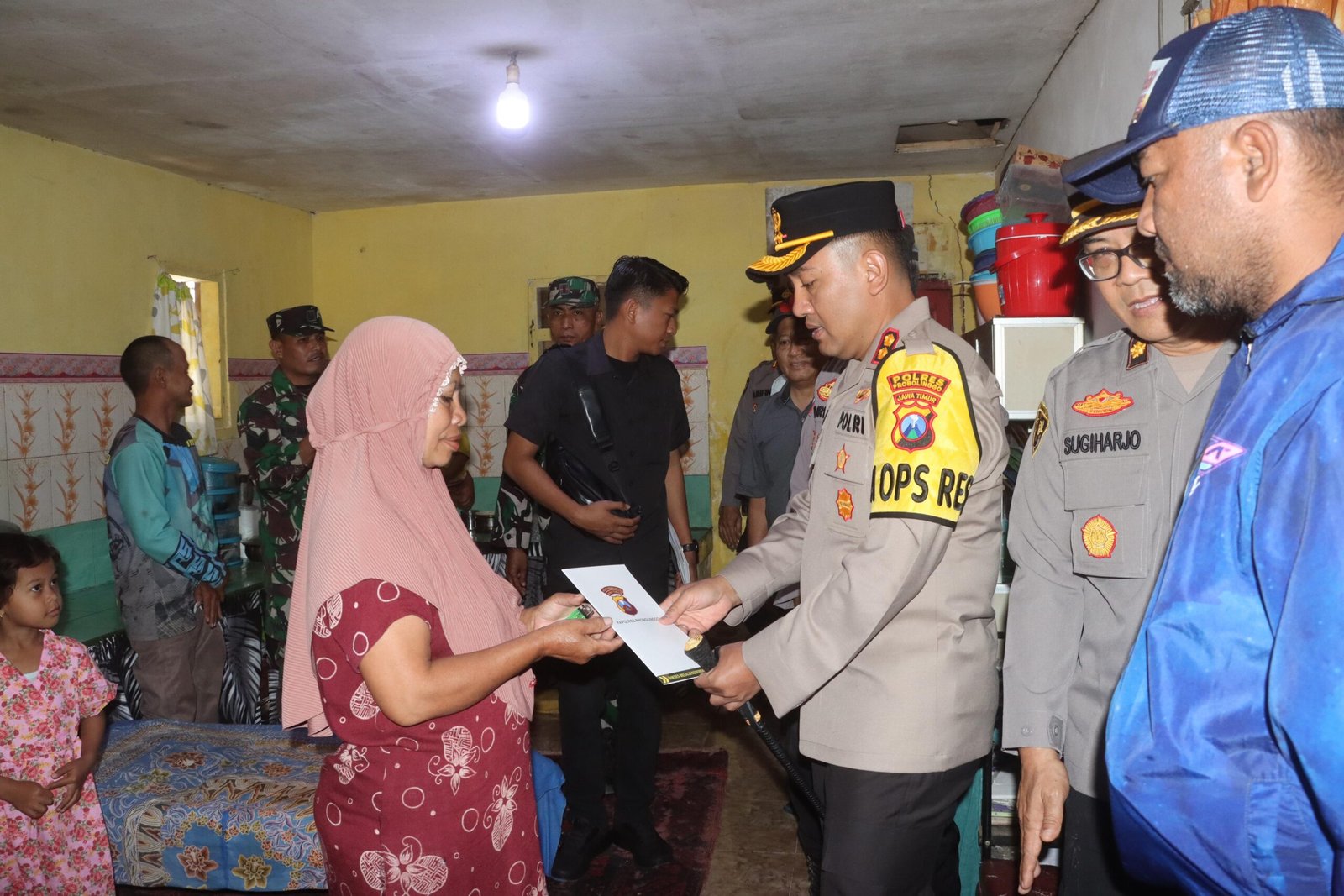 Selain melakukan peninjauan, Kapolres Probolinggo yang baru dilantik itu juga memberikan bantuan sosial paket sembako guna meringankan beban warga yang terdampak.