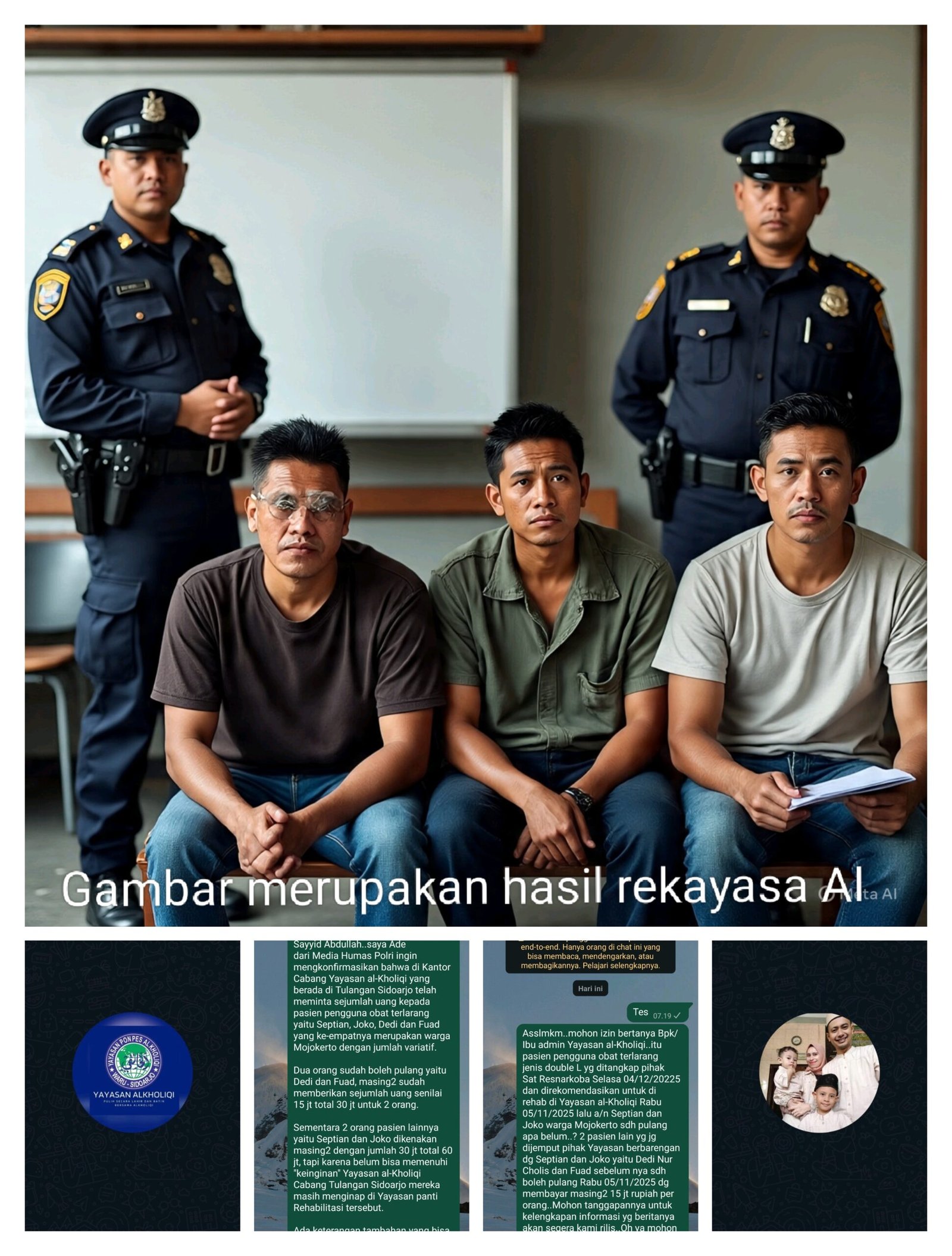 Setelah keluar dari Polres Mojokerto siang itu juga ke-empat tersangka dijemput oleh pihak Panti rehabilitasi dengan menggunakan mobil rehabilitasi milik Yayasan Al-Kholiqi Tulangan Sidoarjo yang merupakan Cabang dari Yayasan induk yang beralamat di Jl.Brigjen Katamso