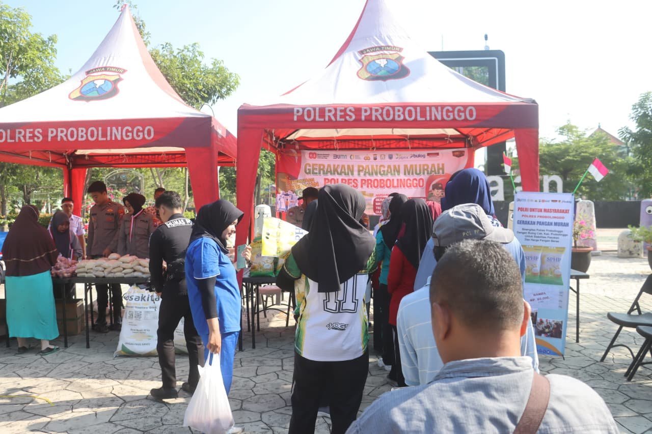 PROBOLINGGO,- Polres Probolinggo Polda Jawa Timur (Jatim) bersama Polsek jajaran menggelar Gerakan Pangan Murah di Kabupaten Probolinggo, Kamis (21/8/2025).